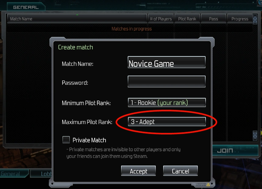 3- Activate the "Private Match" option so you don't struggle with players trying to join your game;